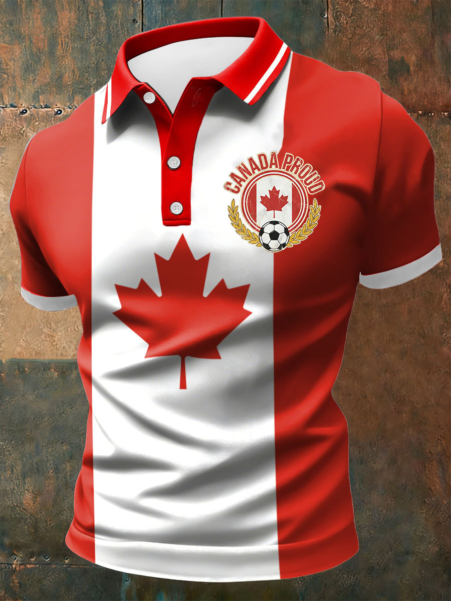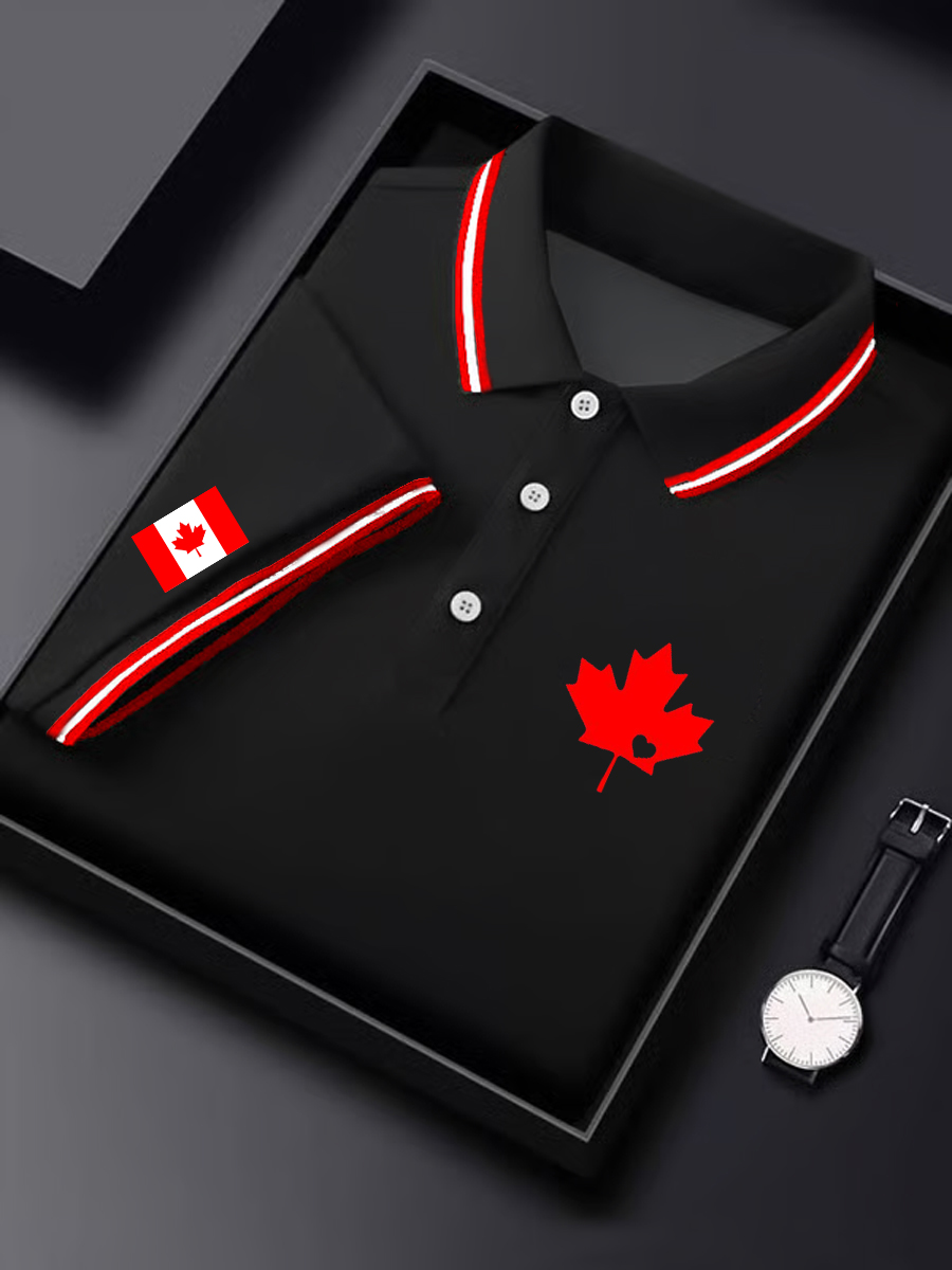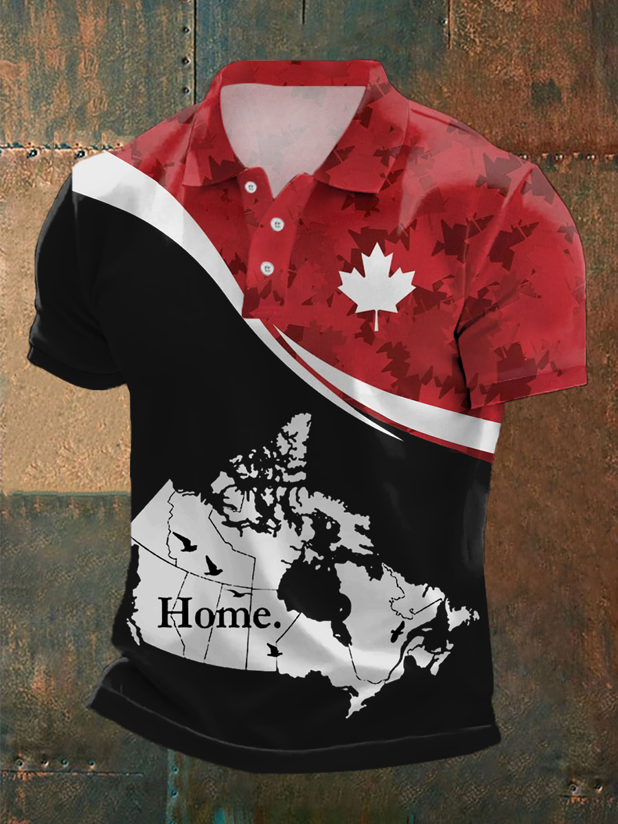 Men's Canadian Maple Leaf Printed Casual Short Sleeve Top