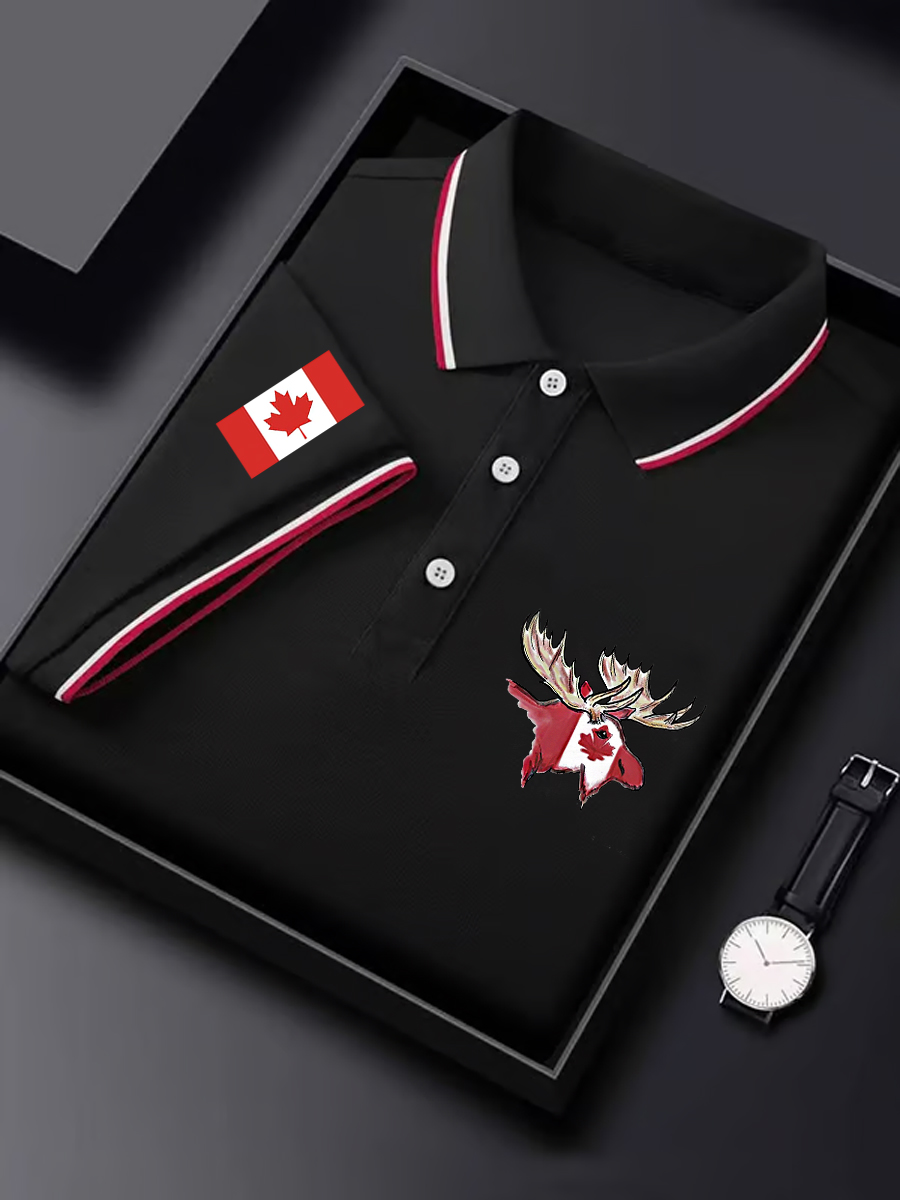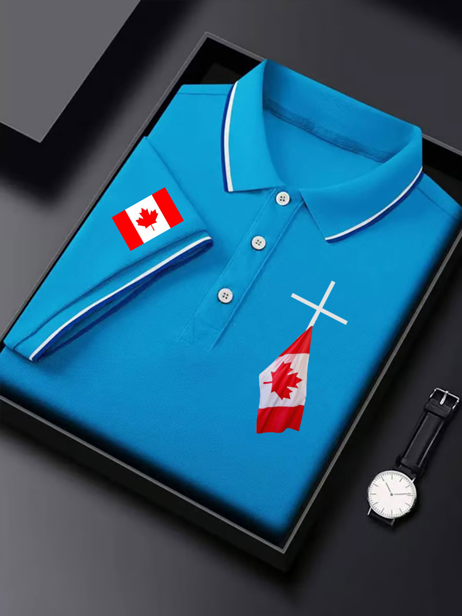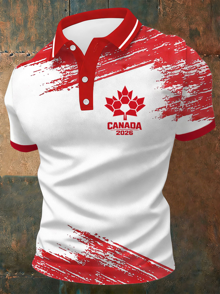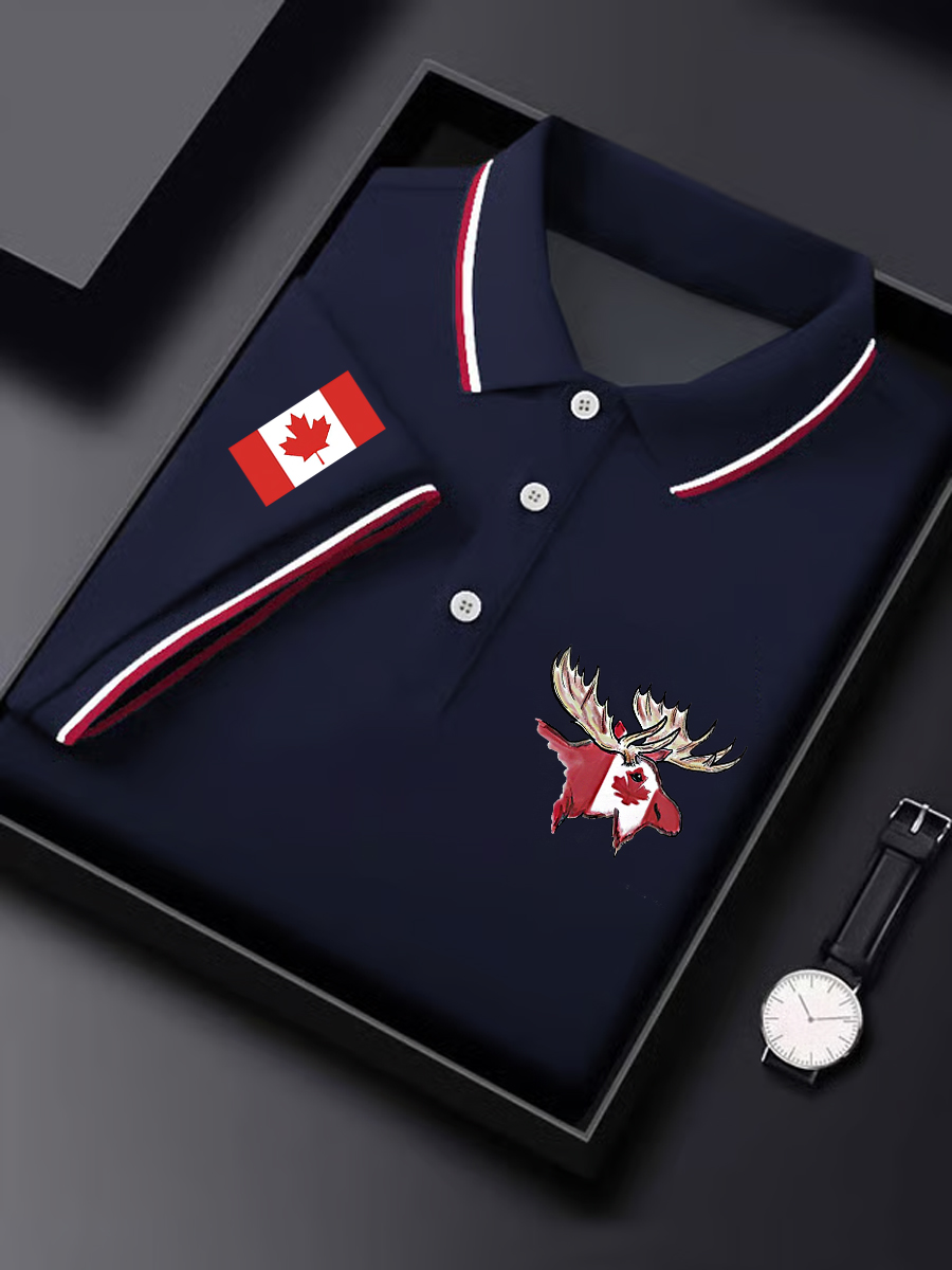 Men's Canadian Maple Leaf Printed Casual Short Sleeve Top