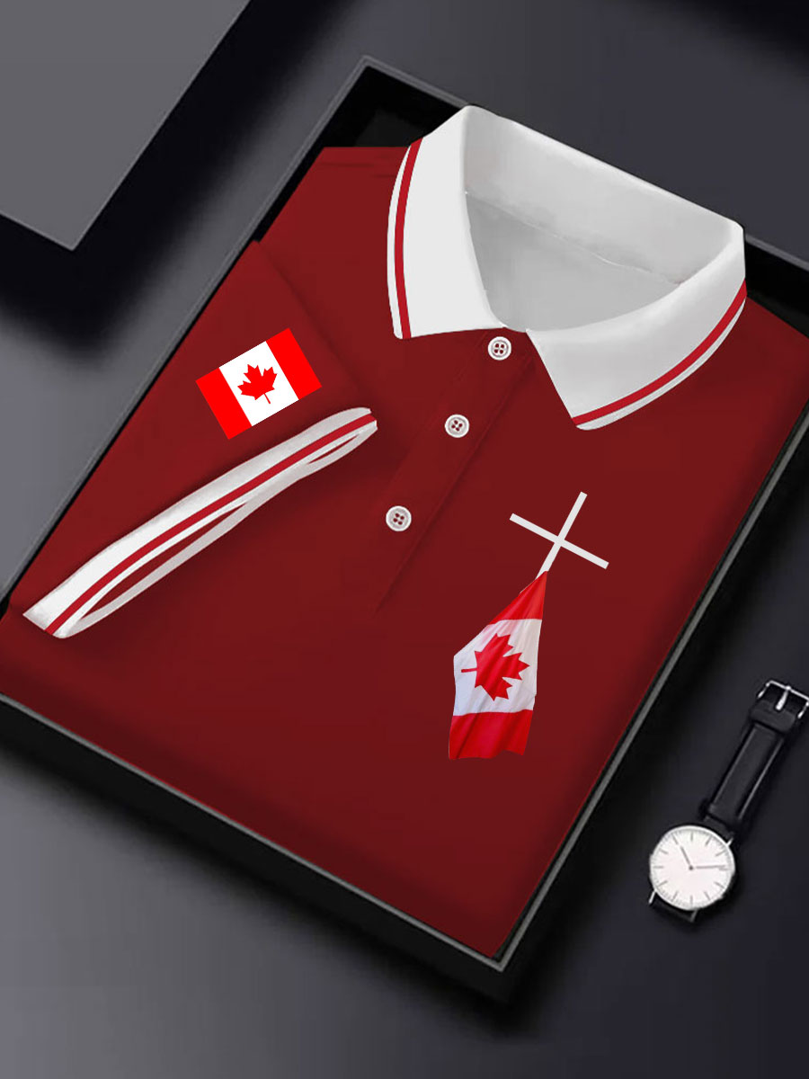 Men's Canadian Flag Maple Leaf Print Casual Top