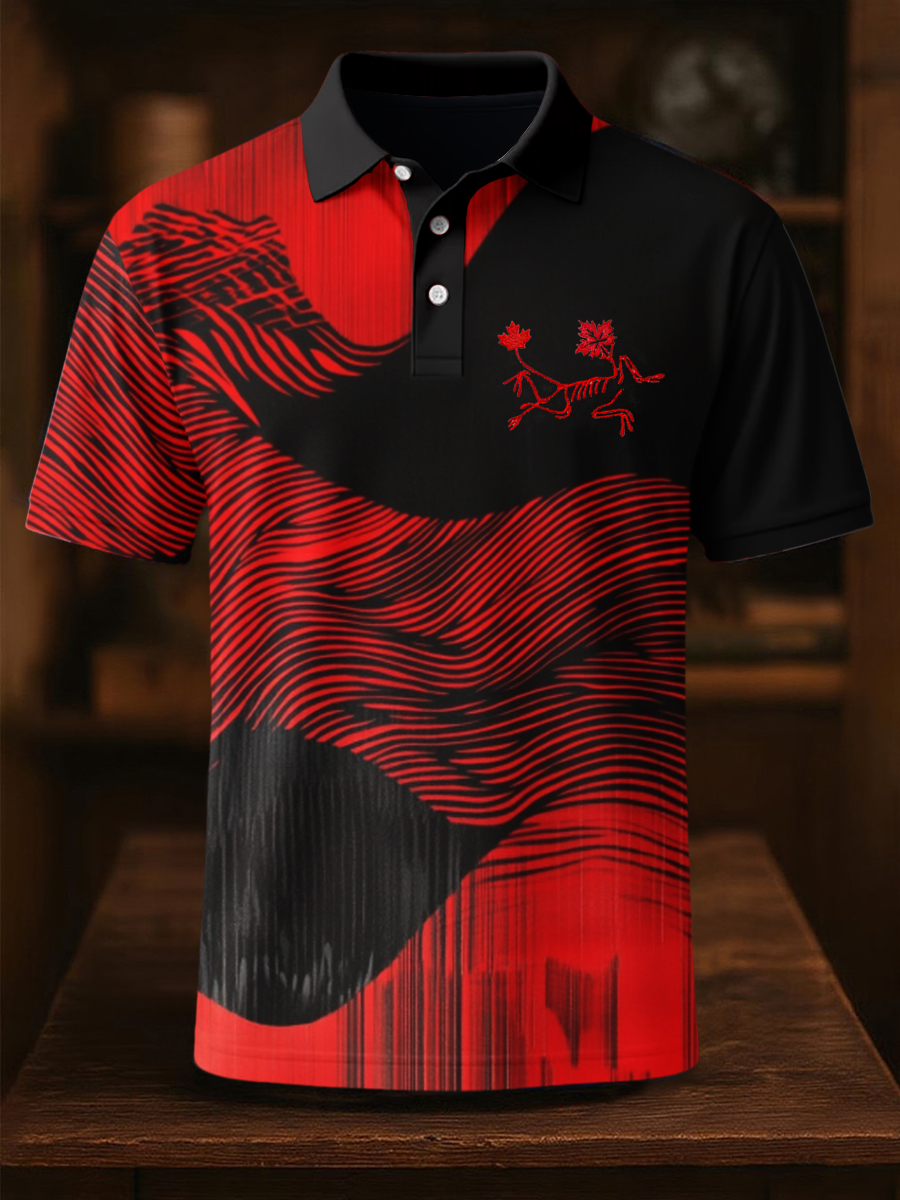 Men's Canadian Maple Leaf Art Waves Print Casual Top