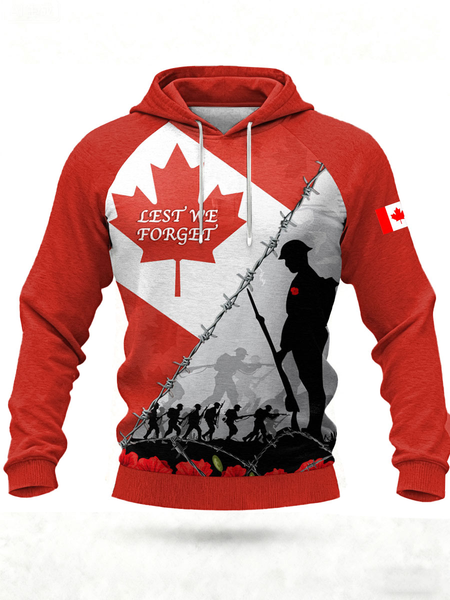 Men's Canadian Remembrance Day Printed Casual Hoodie