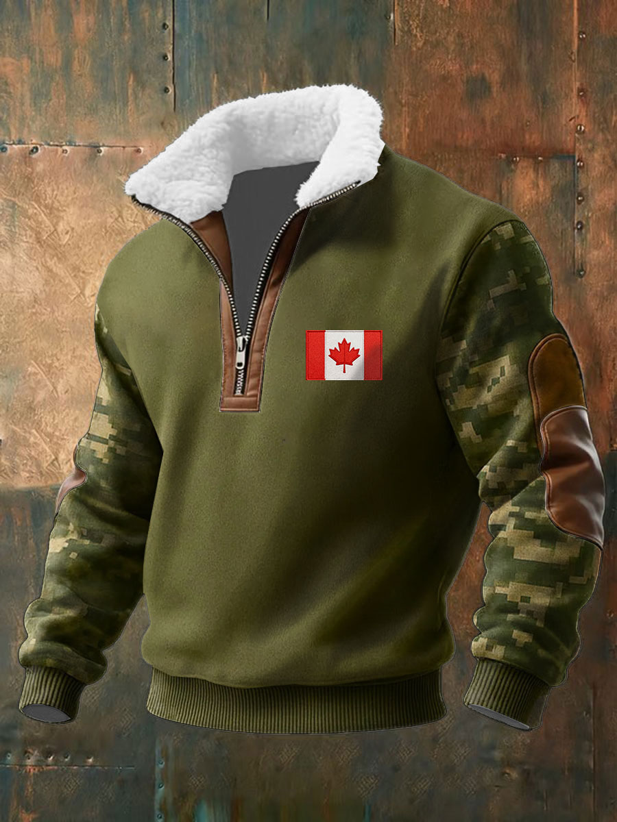 Men's CANADA Printed Casual Fur Collar Zipper Top