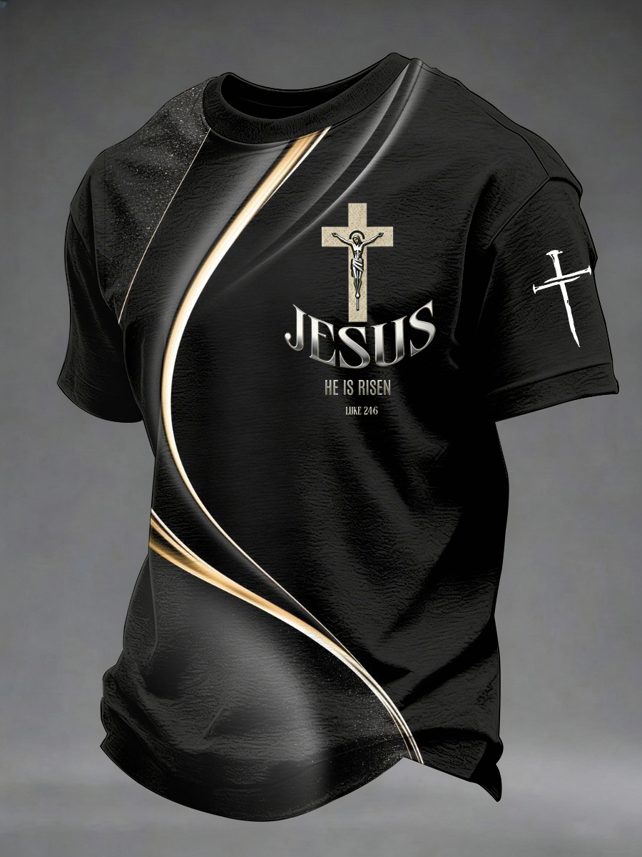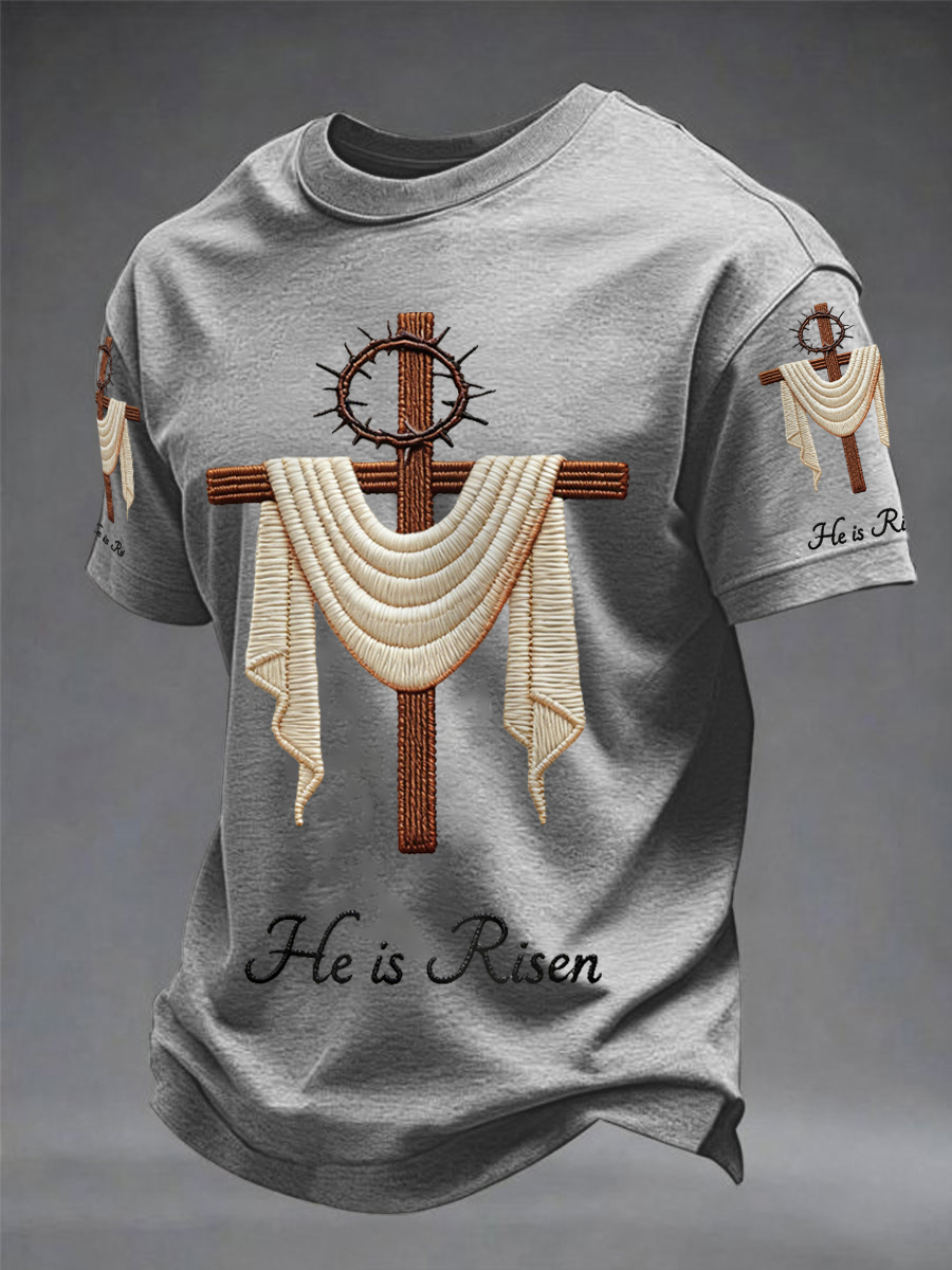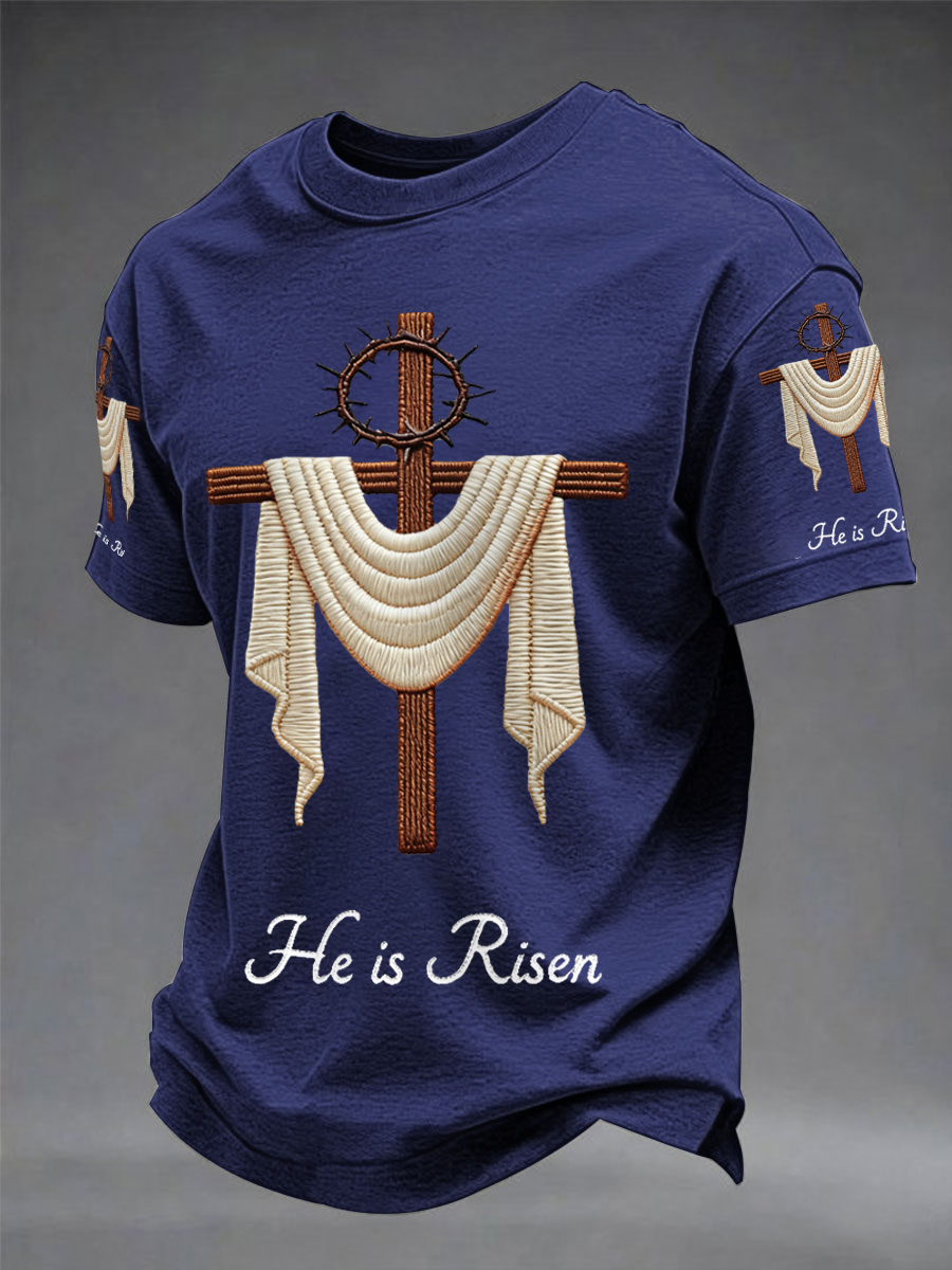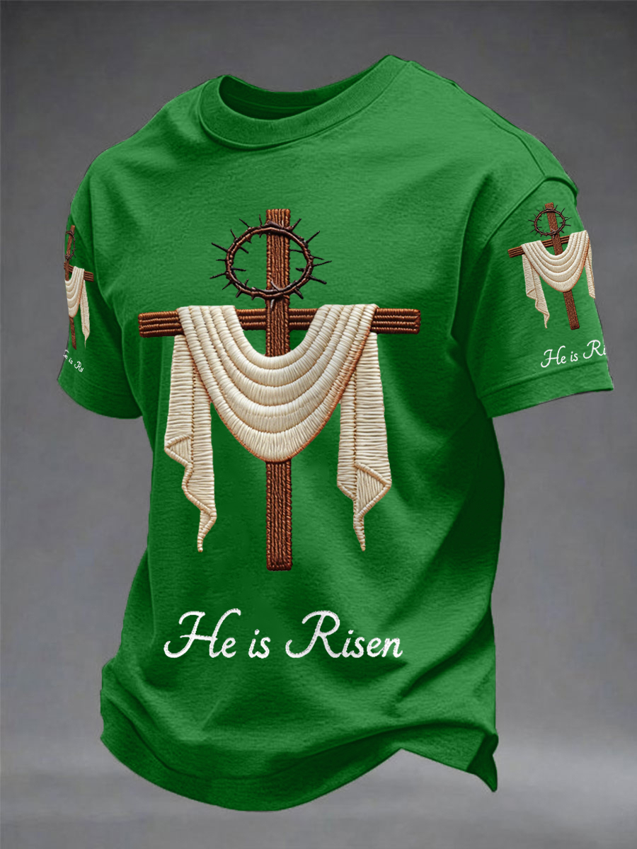 Men's He Is Risen Easter Jesus Christian Cross Print Casual Tee