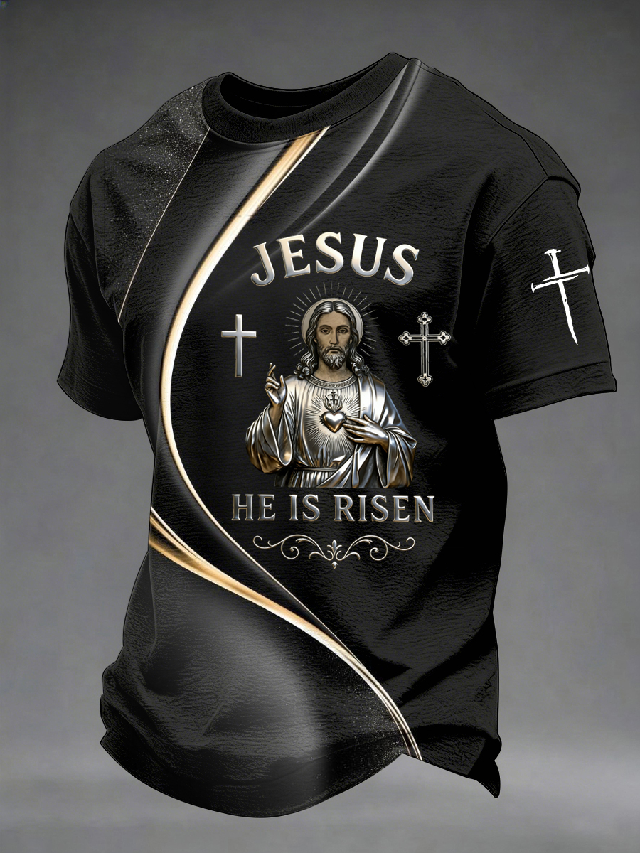 Men's Jesus He Is Risen Art Waves Print Casual Tee