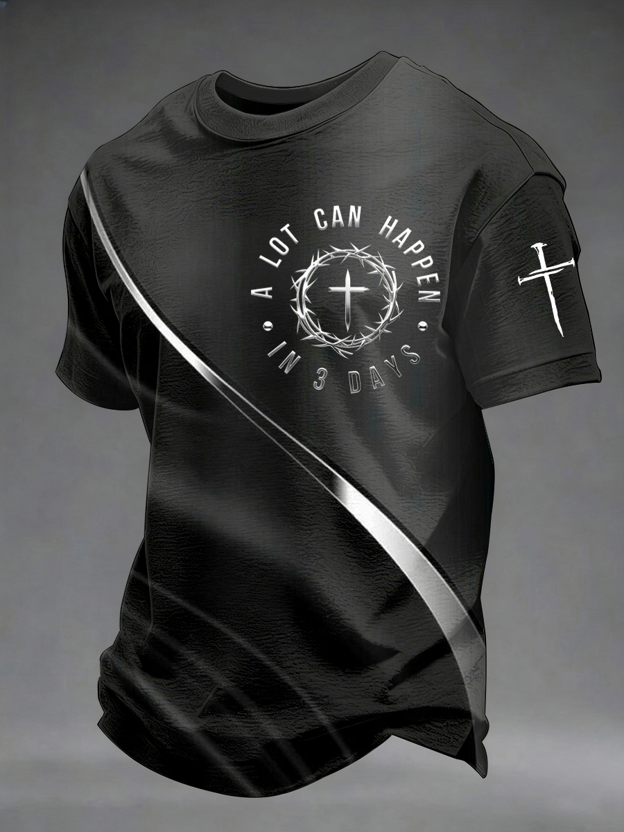 Men's A Lot Can Happen in 3 Days Embroidery Pattern T-Shirt