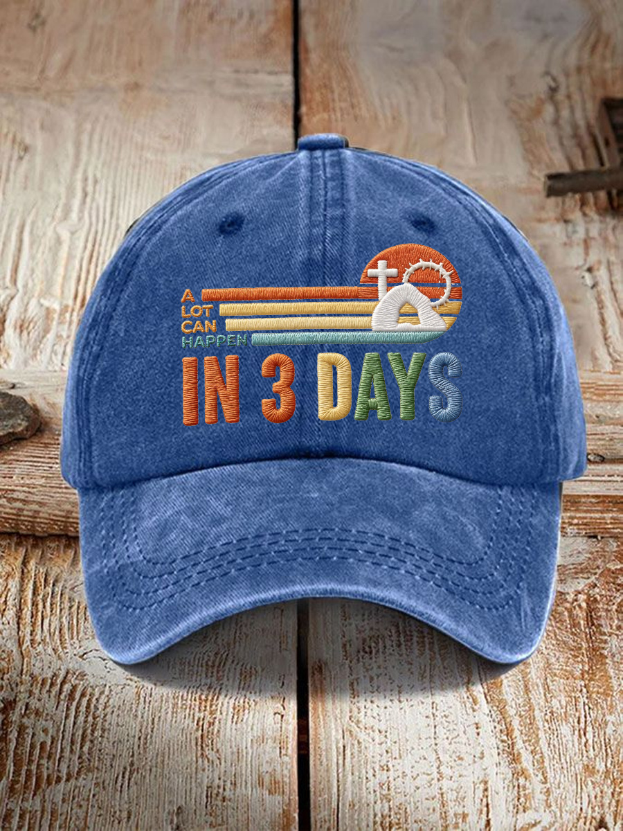 Unisex A Lot Can Happen in 3 Days Embroidery Pattern Hat