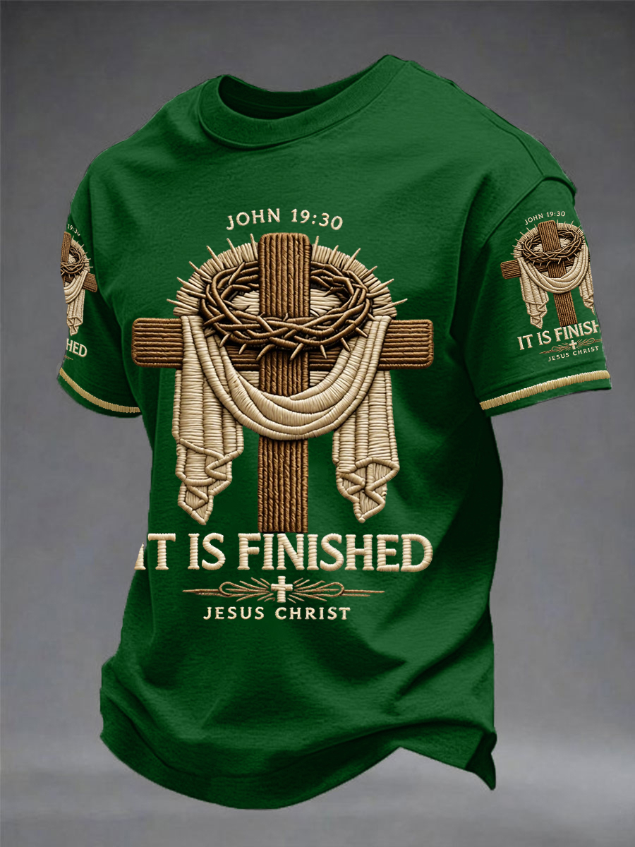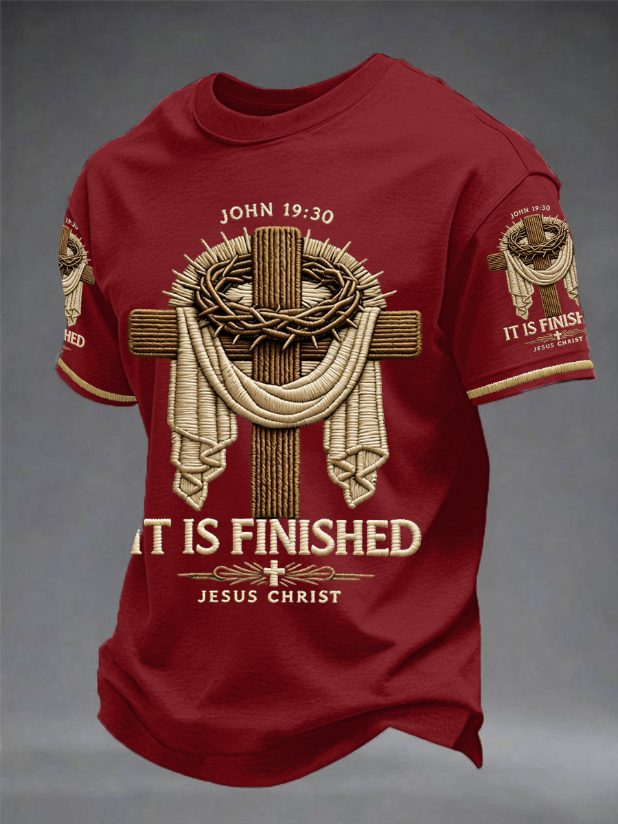 Men's He Is Risen It’s Finished Jesus Christian Cross Print Casual Tee