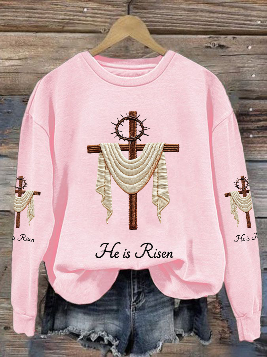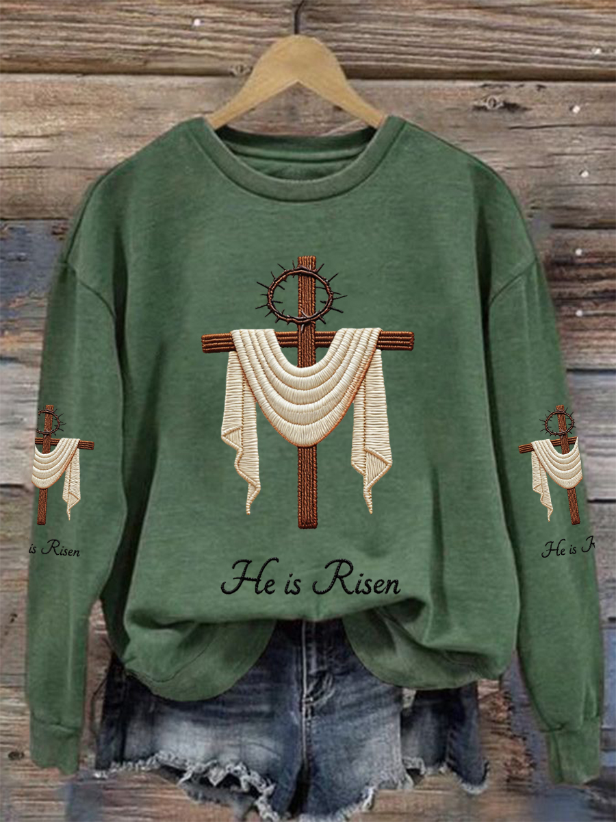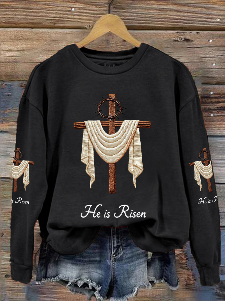 Women's He Is Risen Jesus Christian Cross Print Casual Sweatshirt