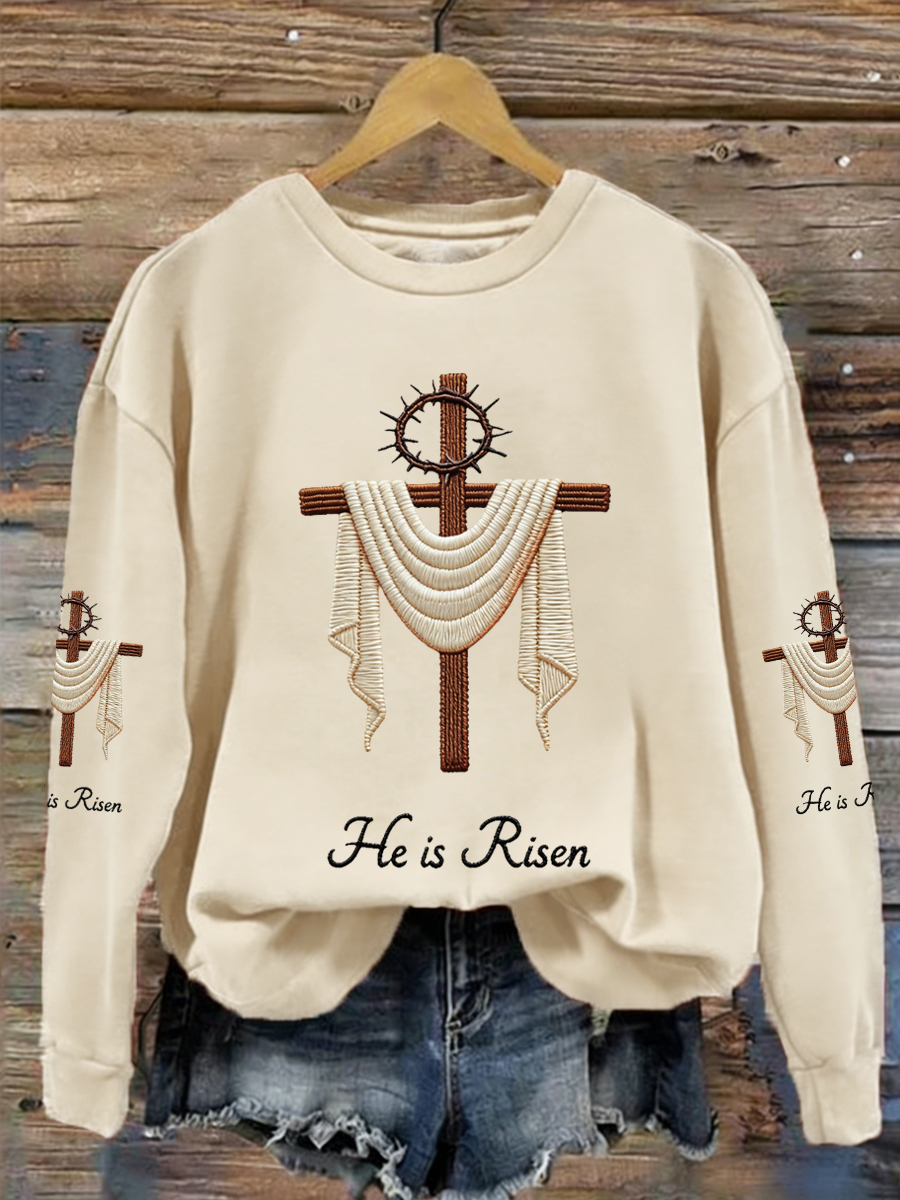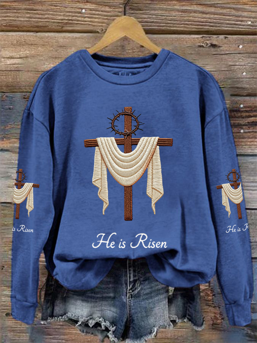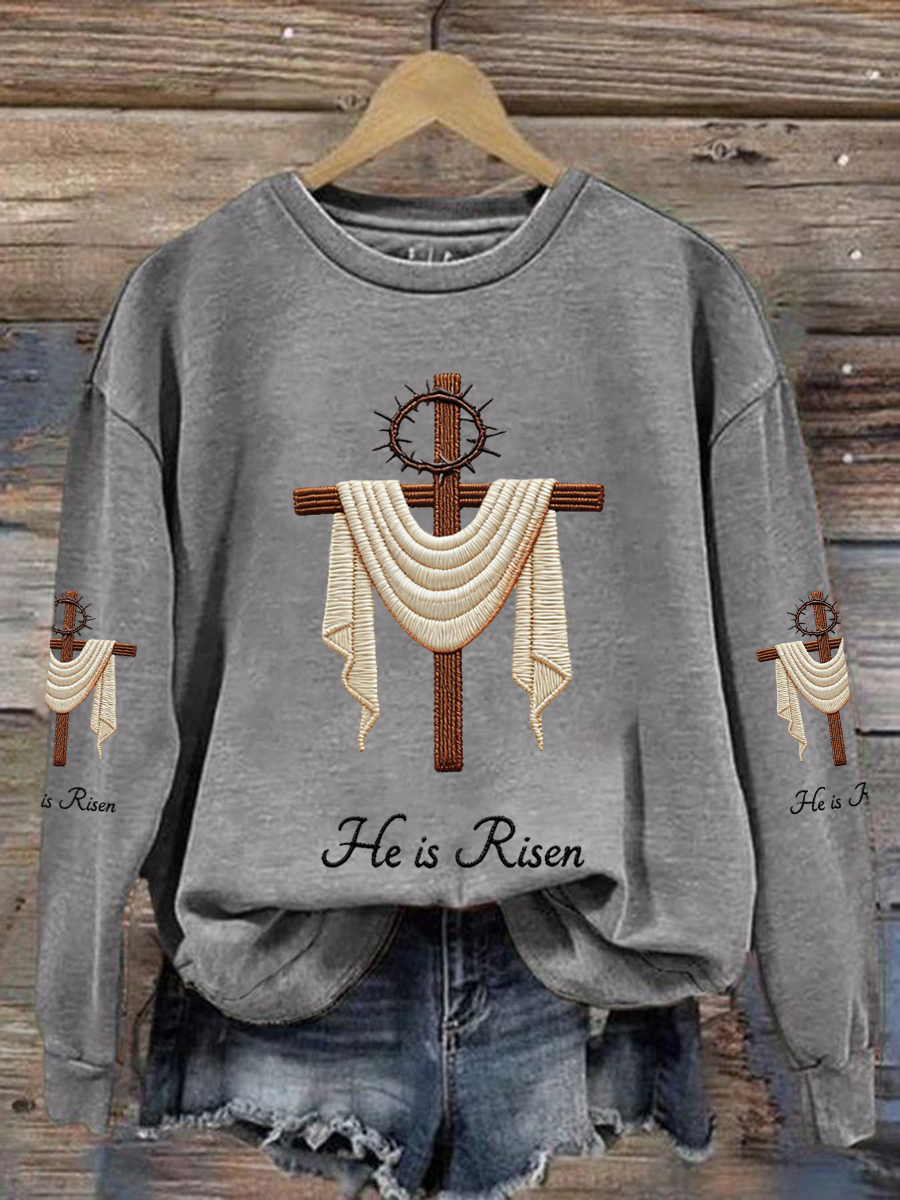 Women's He Is Risen Jesus Christian Cross Print Casual Sweatshirt