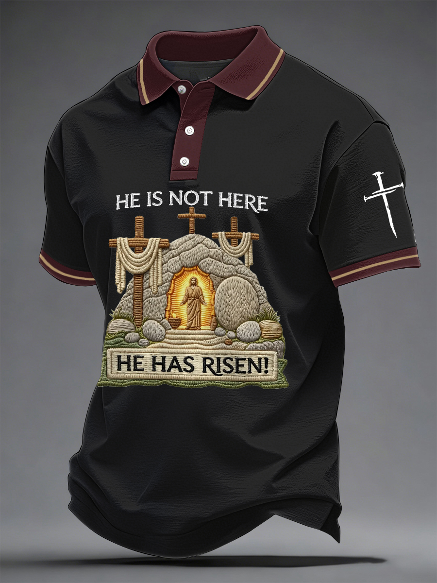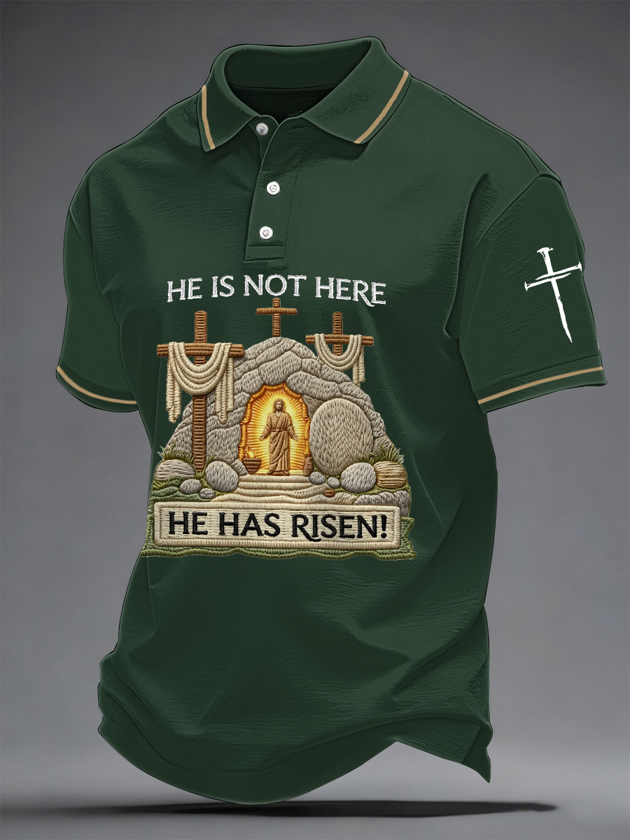 Men's He Is Not Here He Has Risen! Jesus Christian Cross Print Casual Polo