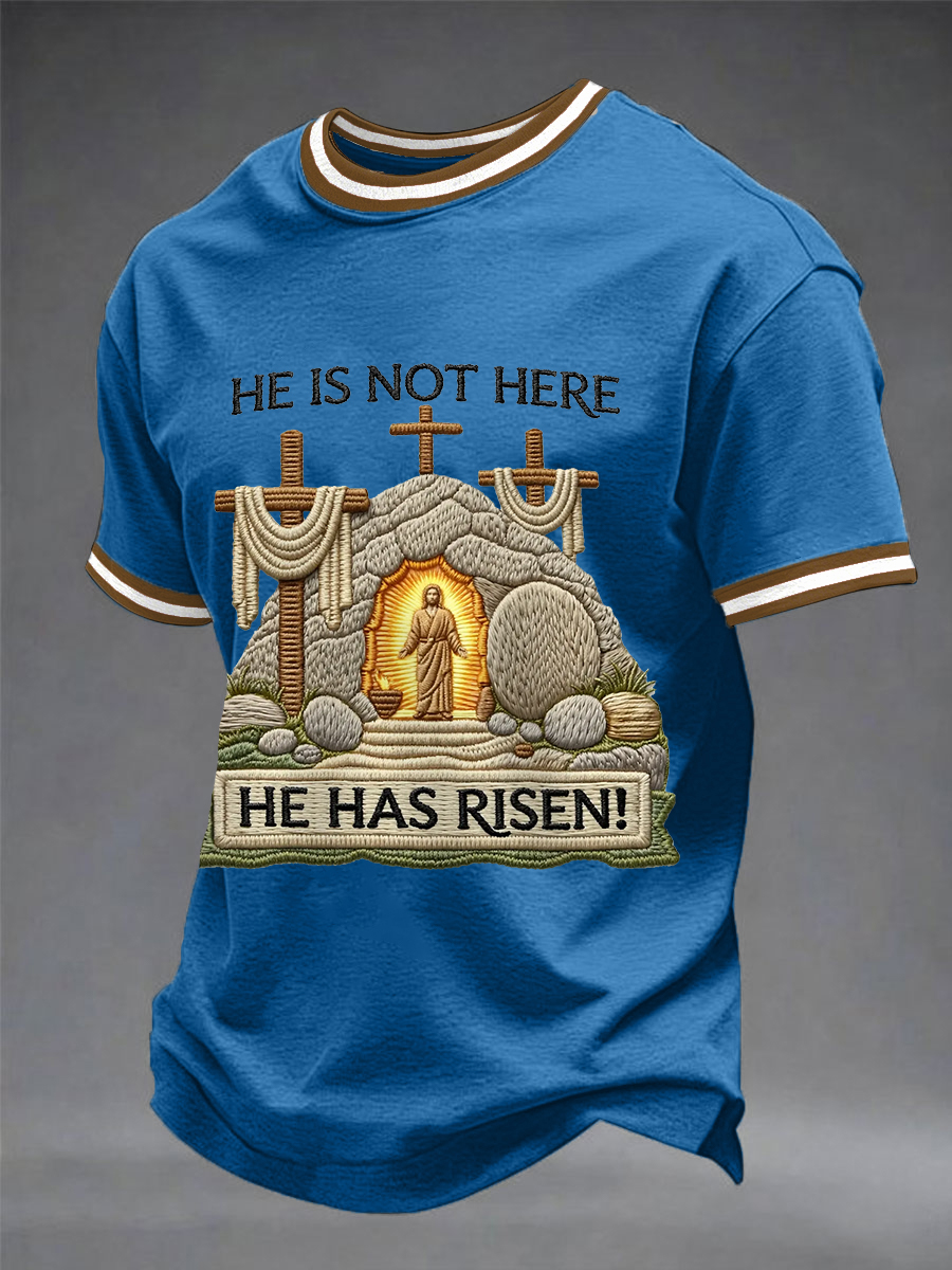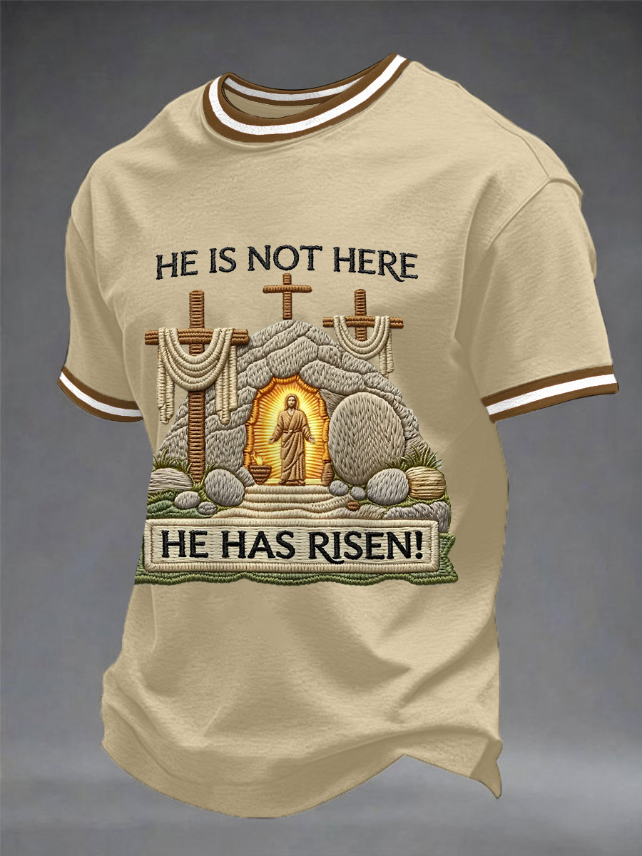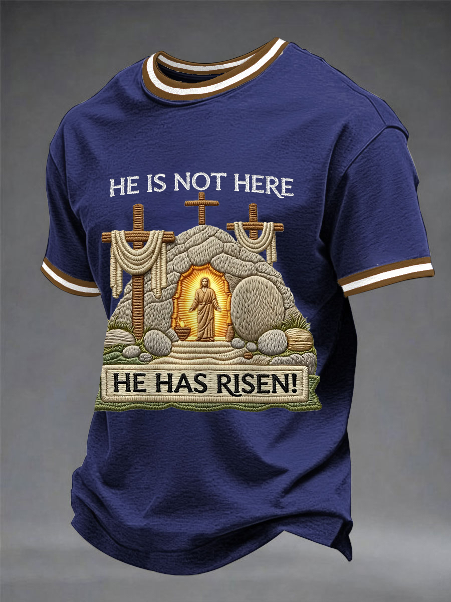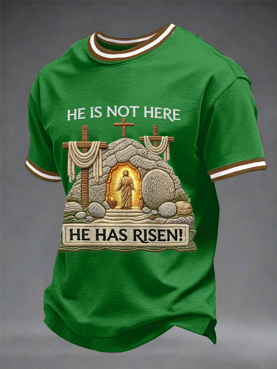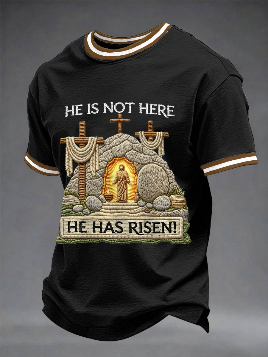 Men's He Is Not Here He Has Risen Easter Jesus Christian Cross Print Casual Tee