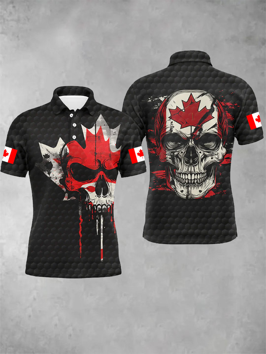 Men's 3D Canada Flag Skull Golf Short Sleeve Shirt