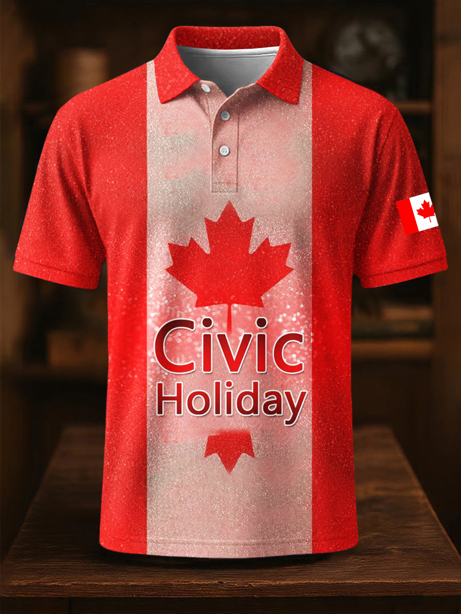Men's Canadian Maple Leaf Printed Casual Short Sleeve Top
