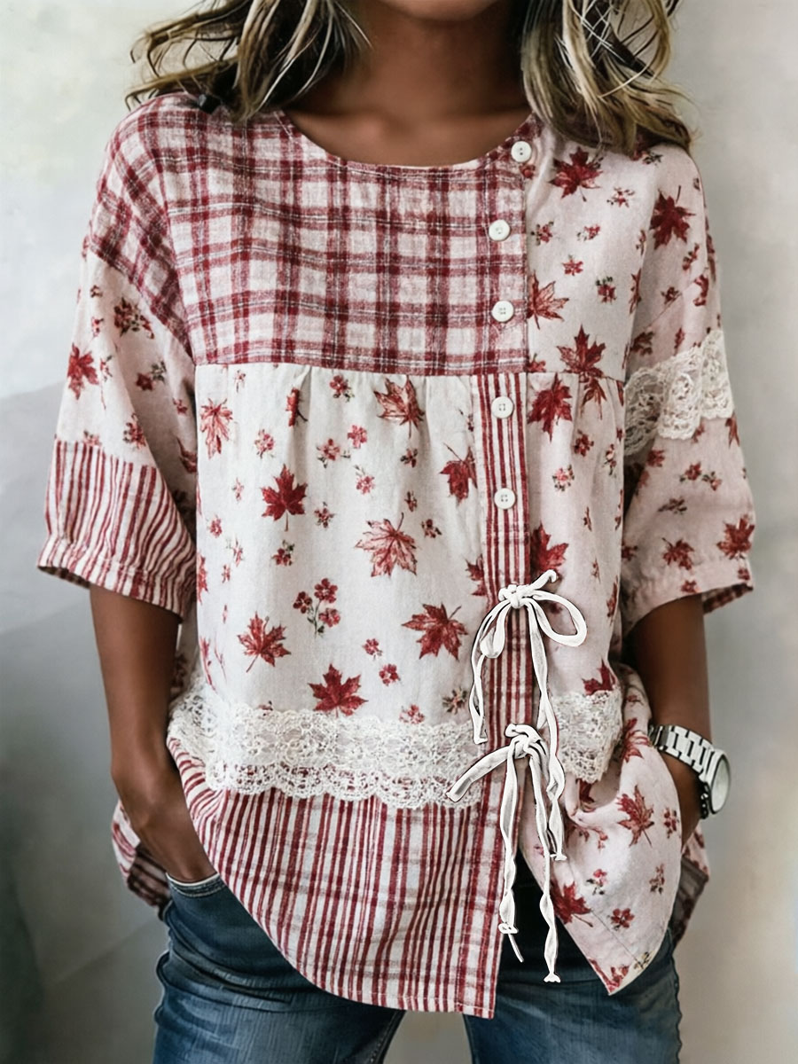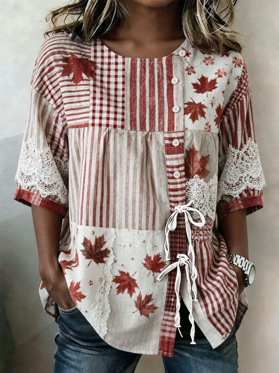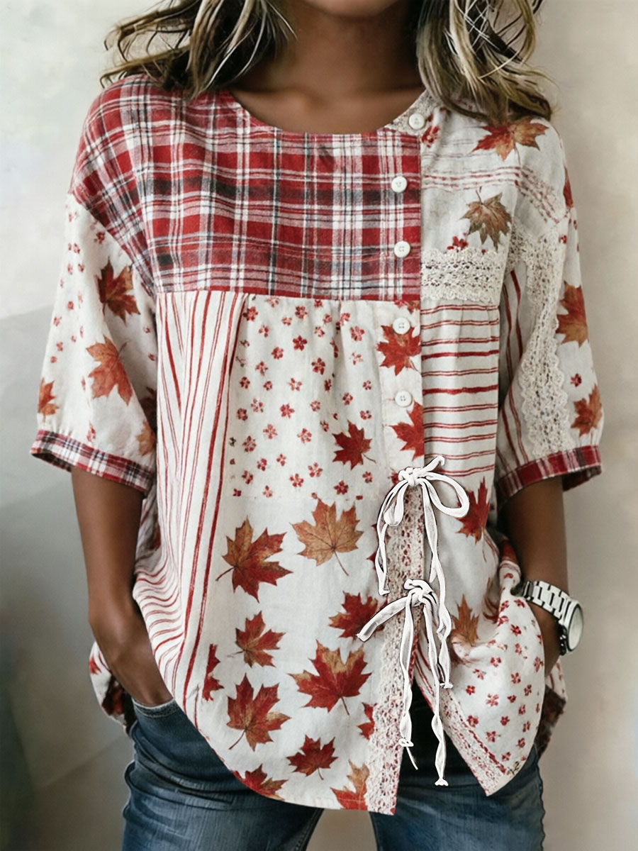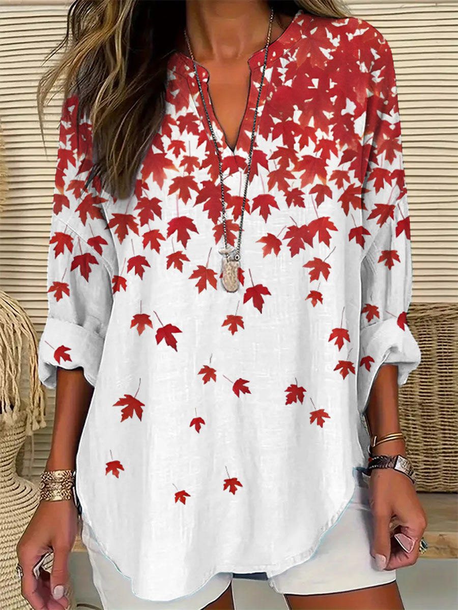 Women's Maple Leaf Cotton-Linen Casual Pants