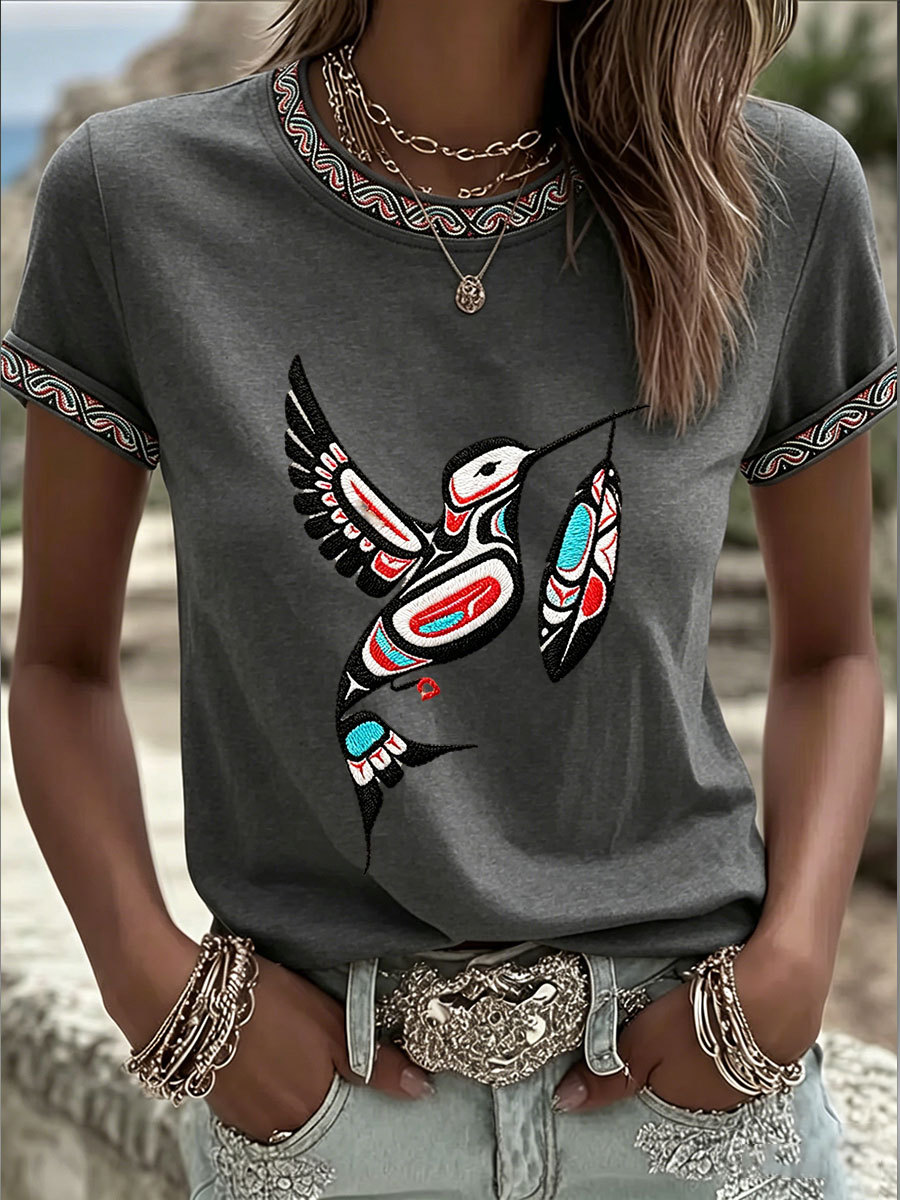 Women's Indigenous Totem Art Casual T-shirt